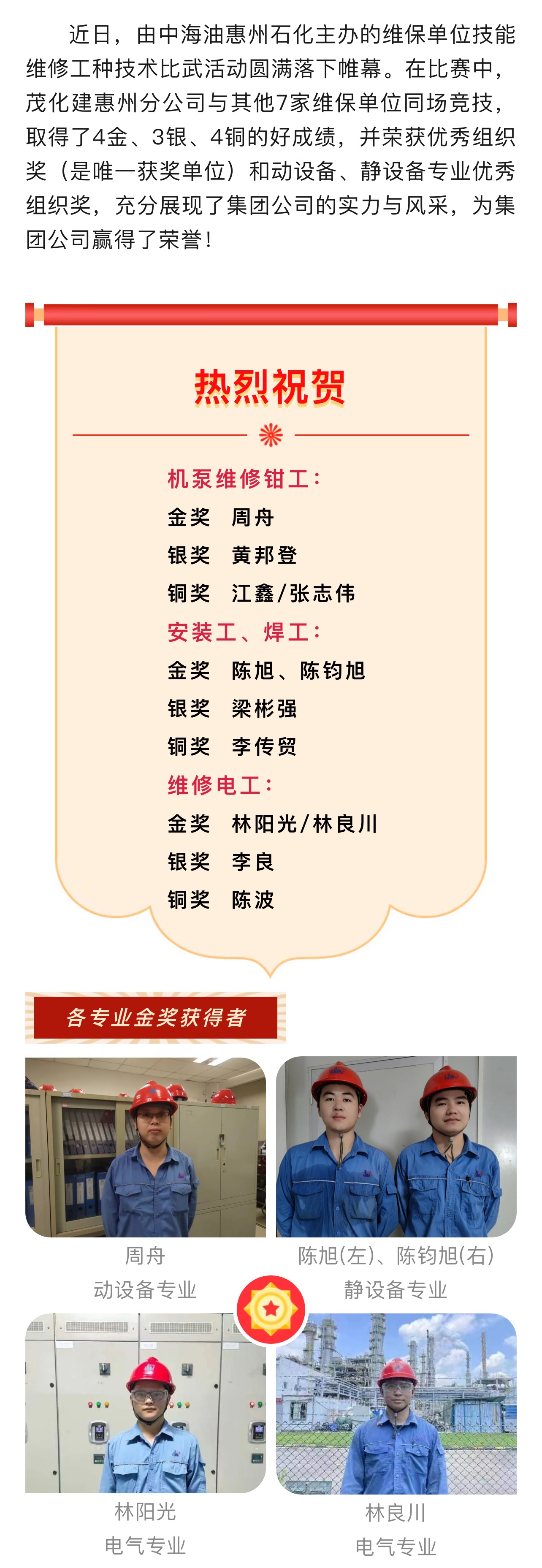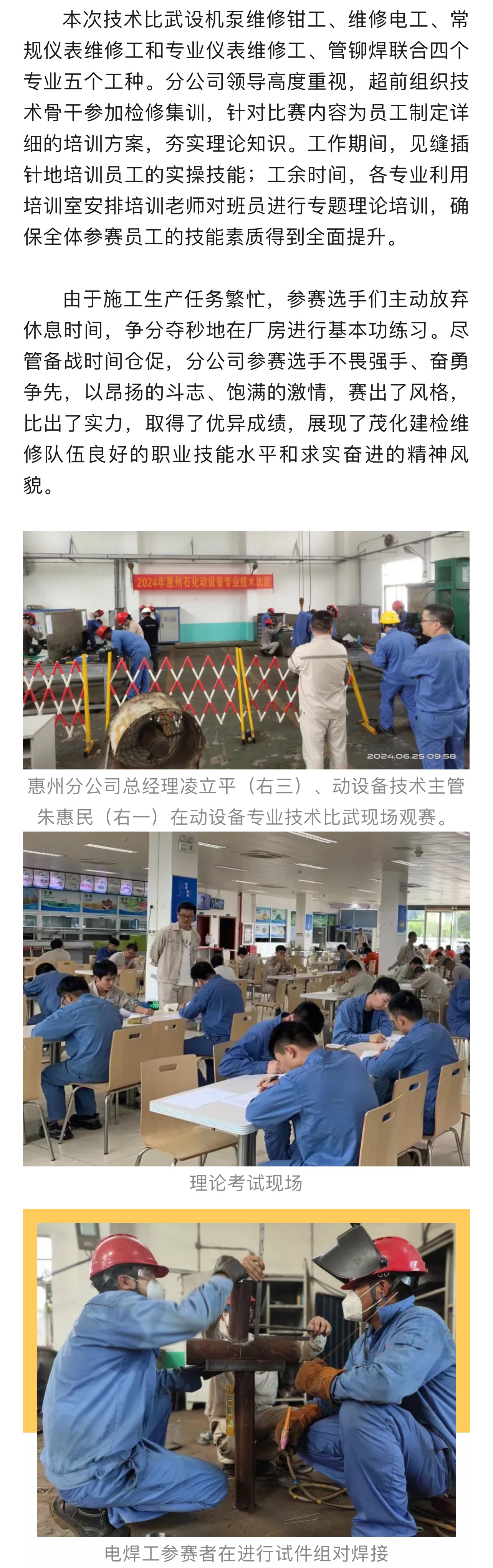 喜訊:惠州分公司在惠州石化維保單位技能維修工種技術比武中獲佳績