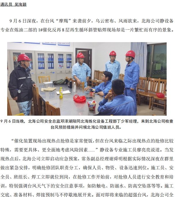 臺風前夕!北海公司對 1#催化再生循環(huán)斜管貼焊搶險