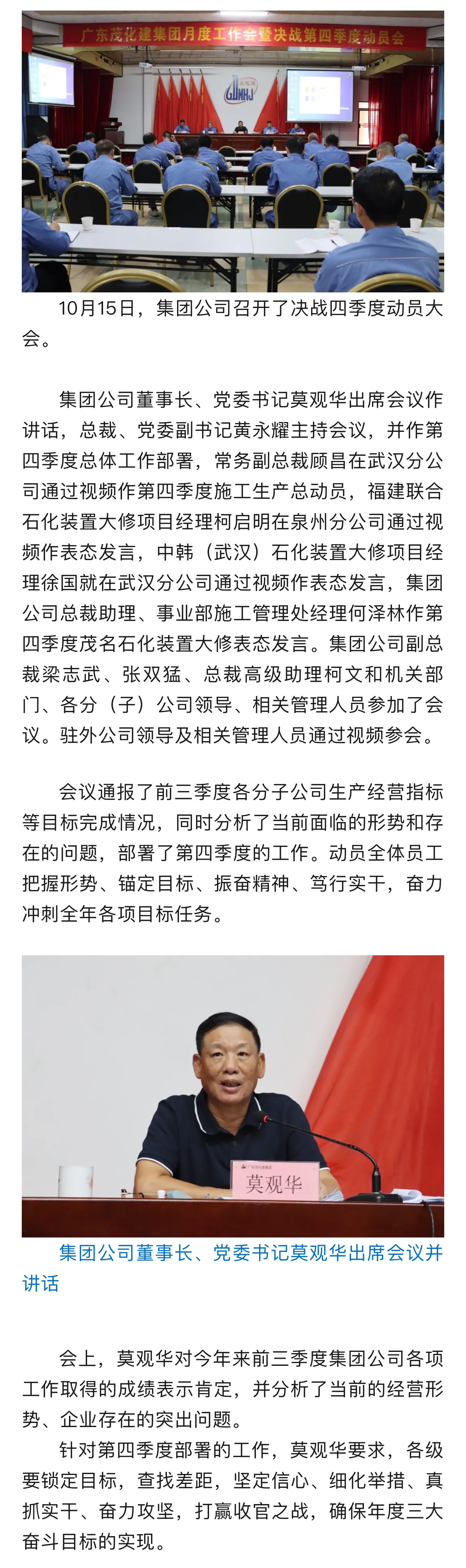 決戰(zhàn)決勝四季度 沖刺全年奮斗目標(biāo)——集團(tuán)公司召開(kāi)決戰(zhàn)第四季度動(dòng)員大會(huì)