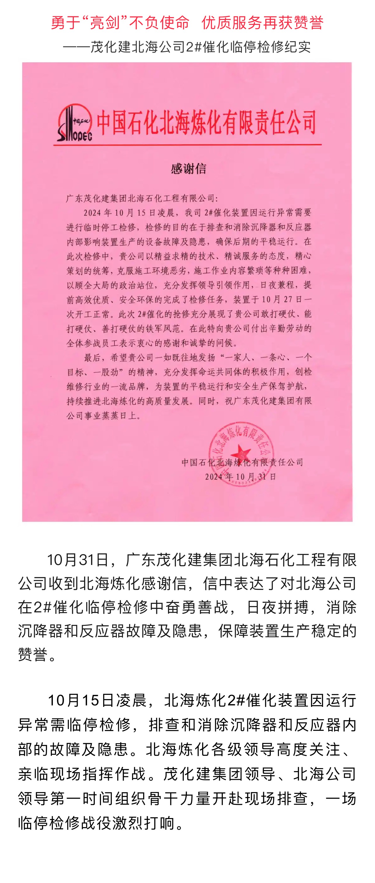 茂化建北海公司2#催化臨停檢修紀(jì)實(shí)