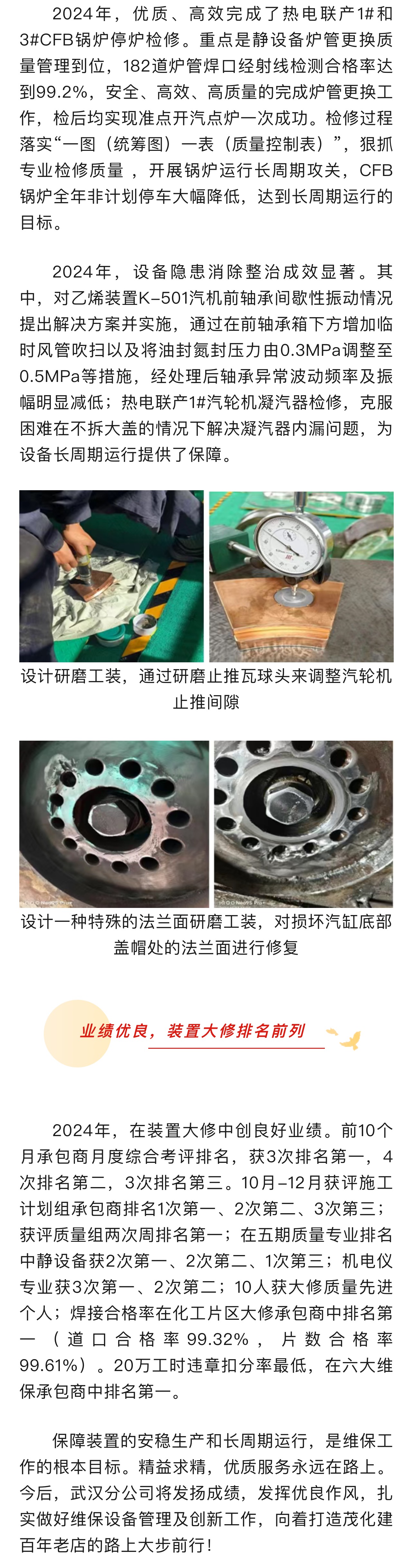 雙喜臨門 | 武漢分公司榮獲2024年度中韓石化“安全管理先進承包商”、“設(shè)備管
